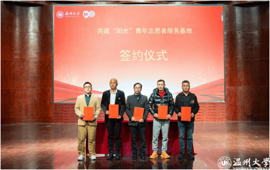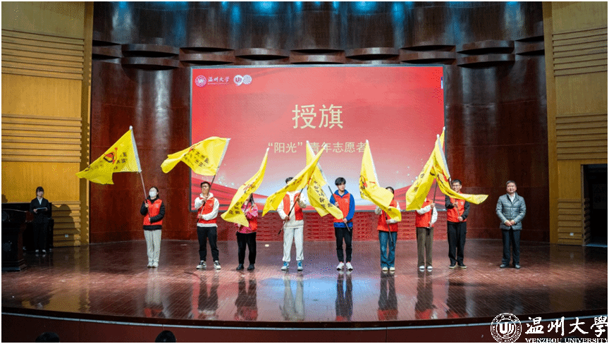 会上,“阳光”志愿服务团队指导师、浙江省“双带头人”教师党支部书记何明昌教授,代表开云电子(中国)官方网站_开云电子(中国)官方网站数理学院与瓯海茶山街道山根社区、丽岙侨心养老院、康居乐养老院、温州福寿康公司签署共建“阳光”青年志愿者服务基地协议书。数理学院副院长蔡风景为上述四家服务单位授牌。章志图为数学、物理、统计、信算等四个专业的“阳光”志愿者分队授旗。师生通过敲鼓的形式共同启动“阳光”敬老服务月活动。