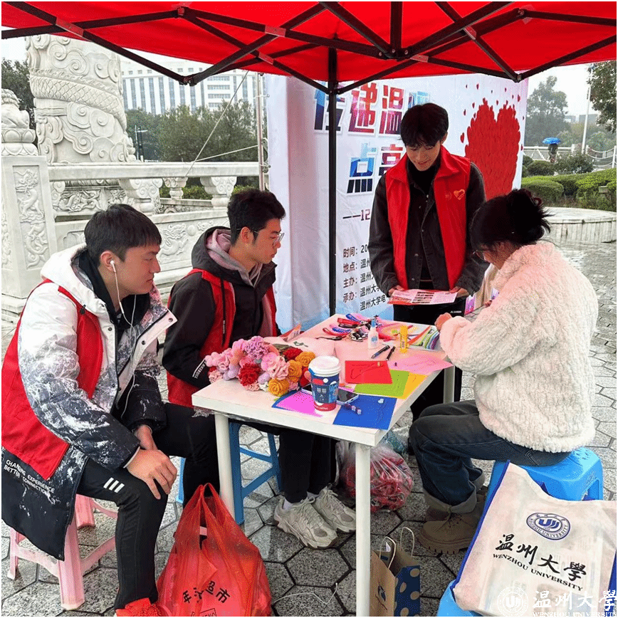 天空虽然下着蒙蒙细雨,但丝毫没有抵消学生们志愿服务的热情,师生志愿者在雨中热情邀请来往同学参与活动。参与者拿出手机转发“寻找身边的单脚残疾人士微刊”,即可获得“单脚鞋银行”特别文创作品“单脚鞋”一个;还有不少同学都参与了衍纸画的手工制作,在纸上留下了他们的创意与对残疾人的关心。此次活动,还将青苗残疾人之家由残疾人亲手制作的毛线花工艺品,带到现场进行义卖。同学们买去残疾人士手工制作的工艺品,收获一份喜悦,奉献一份爱心,为助力残疾人创业增收贡献了力量。活动的最后,汇聚着大家对残疾人关怀的爱心被一张张贴纸“点亮”,传递着我们对残疾人的温暖。
