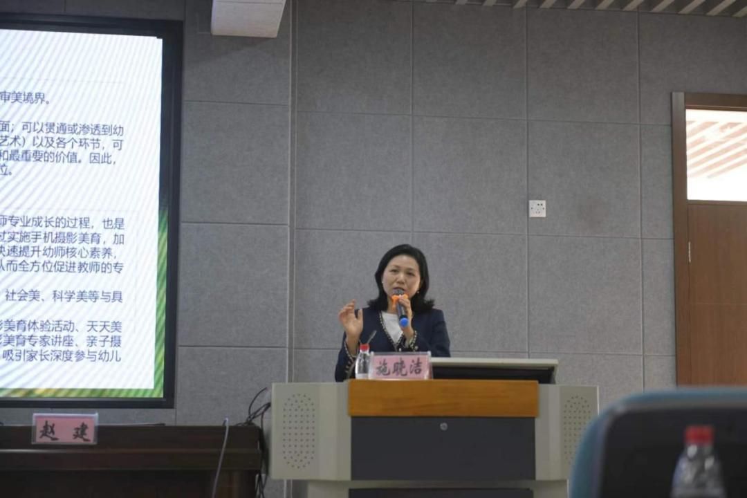 温大附属滨海第二幼儿园施晓洁园长报告《摄影美育——基于手机拍摄的幼儿美育实践》,是胡铸鑫副教授来园指导两年来的未来教育标杆性项目的实施成果总结,阐述了在大美育视野下摄影要从娃娃抓起的教育初心之路,以环境创设、教学指导、专业研究、主题研究、平台拓展等方面的实践探索,重点向与会者展示了别具一格的幼儿园创新摄影馆,分为化妆区,拍摄区,打印区,装裱区,阅读区,展示区等及开展幼儿摄影实践课程两年来遇到的问题和心得。温大附属滨海二幼将以浙江省中小学摄影教育基地学校的荣誉为新的起点,深入推进课题研究,让幼儿摄影教育服务儿童美育成长。
