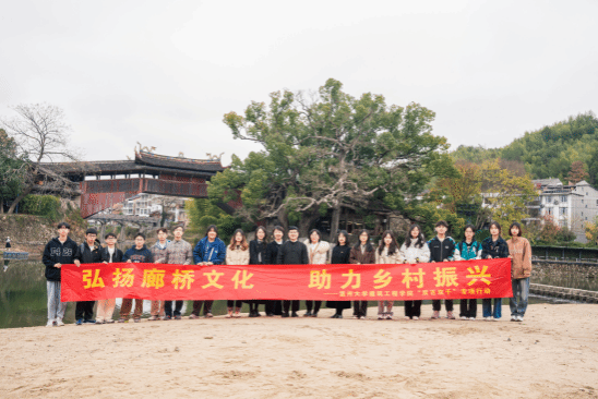 建工学院师生与广贤廊桥合影