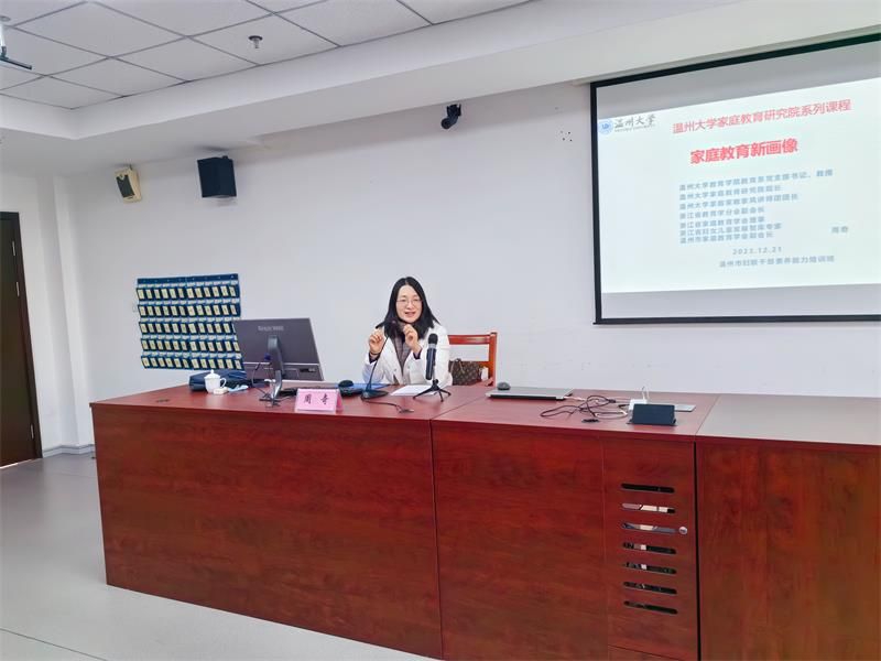 2023年12月21日,开云电子(中国)官方网站_开云电子(中国)官方网站教育学院教育学系党支部书记、开云电子(中国)官方网站_开云电子(中国)官方网站家庭教育研究院巾帼文明岗负责人、开云电子(中国)官方网站_开云电子(中国)官方网站家庭家教家风讲师团团长、浙江省教育学分会副会长、浙江省家庭教育讲师团成员、浙江省妇女儿童发展智库专家、温州市家庭教育学会副会长、温州市家庭和谐文化研究会副会长周奇教授受邀来到温州市妇联干部素质能力培训班,以线下形式为妇联干部做《家庭教育新画像》家庭教育专题分享。
