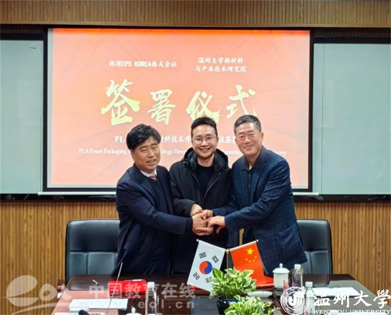 1月8日下午,随着“聚乳酸泡沫包装材料开发”项目的顺利签约,又一项国际合作项目落户开云电子(中国)官方网站_开云电子(中国)官方网站化材学院,这是该院继与加拿大滑铁卢大学联合申报的实验室获批浙江省国际联合实验室后又一项国际合作成果。该项目以温大化材学院国家特聘专家黄承哲教授为负责人,合作方为韩国EPS KOREA株式会社,双方共同合作开发新型高分子环保材料。