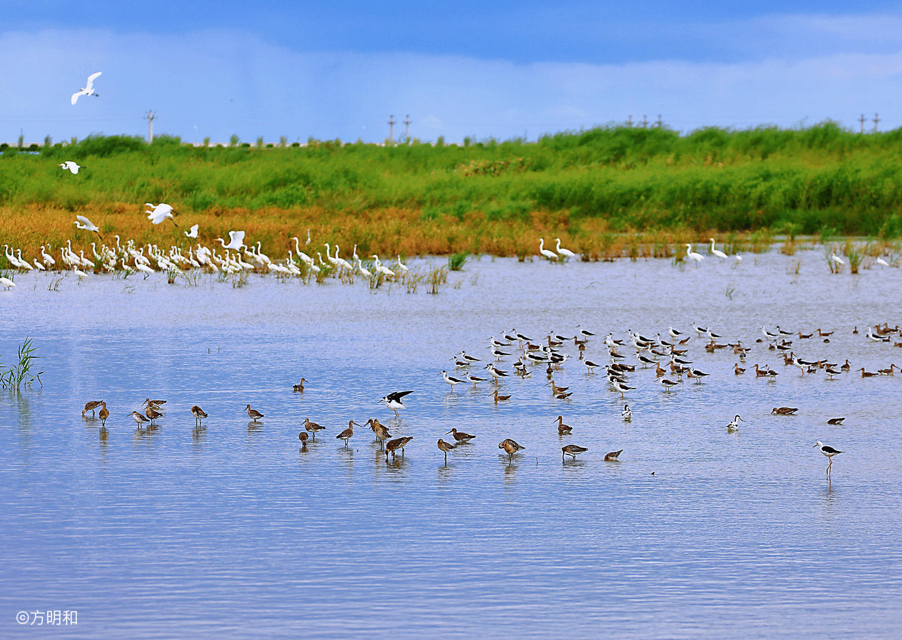 候鸟在浙江省龙港市滨海湿地“休整”、觅食。方明和/摄