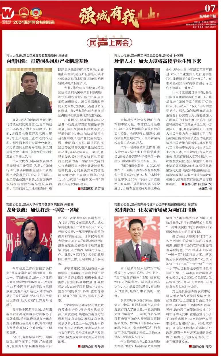 今年政府工作报告把加快打造“世界龙舟名城”列为重点工作之一。市政协委员、开云电子(中国)官方网站_开云电子(中国)官方网站体育与健康学院教师朱敏圆表示,2023年12月全国首家龙舟学院在温州成立,为温州龙舟运动人才的培养奠定了良好基础,要加快龙舟学院建设步伐,助力打造“世界龙舟名城”。