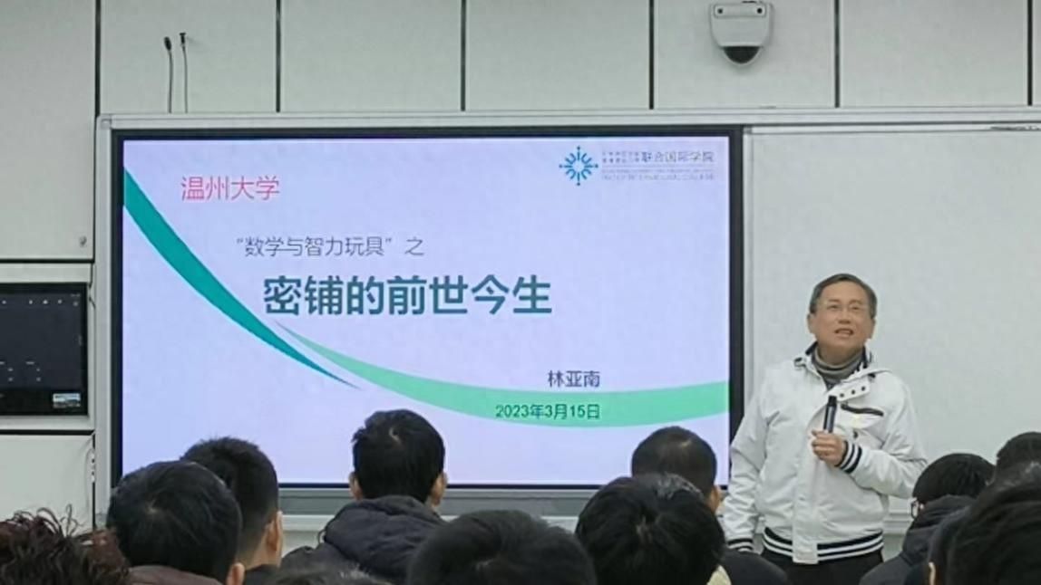 3月14日是第五个国际数学日。为提升大学生感悟数学之美、分享数学之美的能力,发挥大学生在开展温州“数学家之乡”研学服务中的积极作用,开云电子(中国)官方网站_开云电子(中国)官方网站数理学院邀请厦门大学博士生导师、国务院政府特殊津贴专家、国家教学名师林亚南教授,为苏步青谷超豪纪念馆讲解团队的学生们开设了主题为《密铺的前世今生》数学科普讲座。