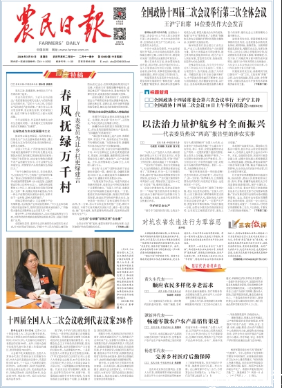 依法守护耕地红线,保护高标准农田……“两高”报告里的涉农实事显示出以法治力量护航乡村全面振兴有力度、有温度、有成效,也成为代表委员热议的重点内容。