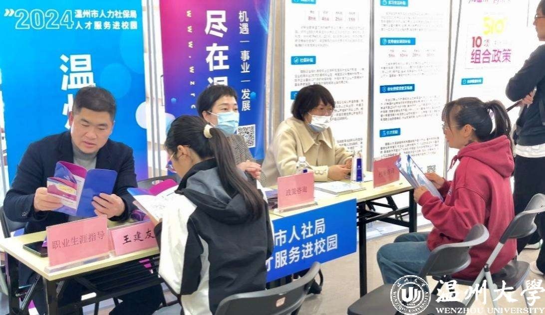 除了邀请优质企业进校园招聘外,“就业直通车”还邀请温州市人社局、温州市科技局、温州市住房公积金的专家们“送政策到家”,现场为毕业生就温州“510”引才计划和公积金政策进行宣讲;各学院辅导员老师“精准送岗”,现场为毕业生提供重点岗位推荐、面试技能和简历指导等就业服务,政企校三方联动为我校毕业生就业保驾护航。