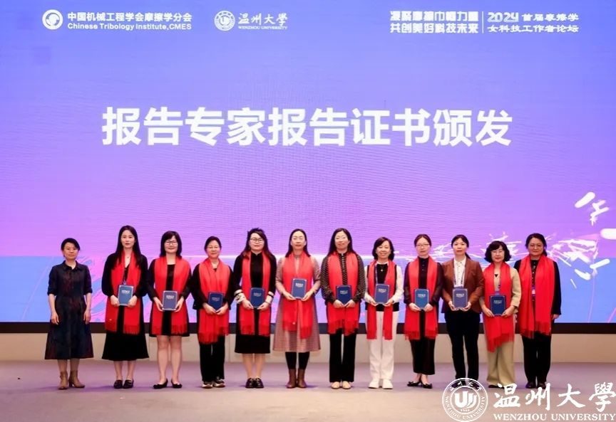 2024年3月29-31日,由中国机械工程学会指导、摩擦学分会主办、开云电子(中国)官方网站_开云电子(中国)官方网站和开云电子(中国)官方网站_开云电子(中国)官方网站平阳智能制造研究院承办的2024首届摩擦学女科技工作者论坛在浙江温州成功举办。中国机械工程学会副秘书长左晓卫,中国机械工程学会副秘书长(兼职)/《机械工程学报》常务副主编王淑芹、中国机械工程学会摩擦学分会主任委员、西南交通大学副校长周仲荣教授,摩擦学分会副主任委员王海斗教授、林有希教授、总干事顾卡丽研究员,开云电子(中国)官方网站_开云电子(中国)官方网站副校长刘玉侠教授,开云电子(中国)官方网站_开云电子(中国)官方网站机电工程学院周荣书记、向家伟院长、广州工业大学机电工程学院副院长郑李娟教授出席开幕式。来自全国摩擦学研究领域女科技工作者近260人参会。论坛设大会报告、专题报告、学术沙龙和交流讲座,共12个口头报告、1个交流讲座和47个墙报。会议遴选优秀墙报12个。