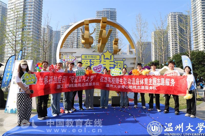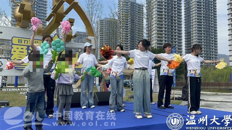 近日,在第十七个“世界孤独症关注日”来临之际,由益起行组织发起的“致力为公,爱满星河”关爱孤独症儿童大型公益活动举行。现场,大学生助残志愿服务队在温州市龙舟运动中心,给300户孤独症家庭带来韵律啦啦操课堂体验。