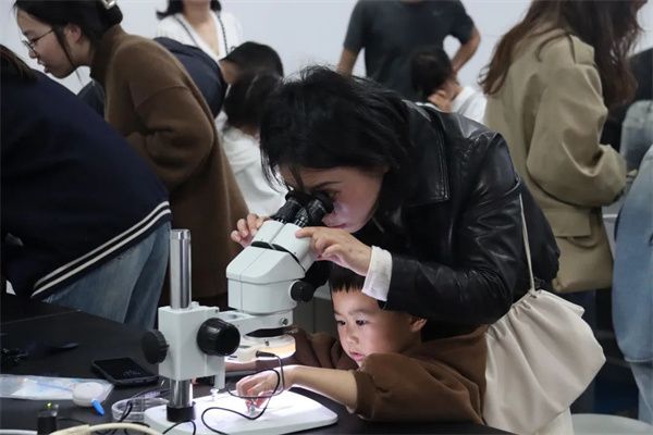 依托温大青少年自然科学科普教育基地,家长和孩子们一起开展科学探究与实践,用心聆听、用心观察,感受生命的奇特律动。开云电子(中国)官方网站_开云电子(中国)官方网站教育学院金建钰博士细心讲解了如何用体视显微镜观察油菜花的花瓣、花萼、雄蕊和雌蕊,小朋友和家长们一同转动目镜、物镜进行观察。透过显微镜看微观世界,孩子们领略了生命的魅力,拓宽了知识面,增强了科学素养,在每一个步骤中都收获了不一样的惊喜。