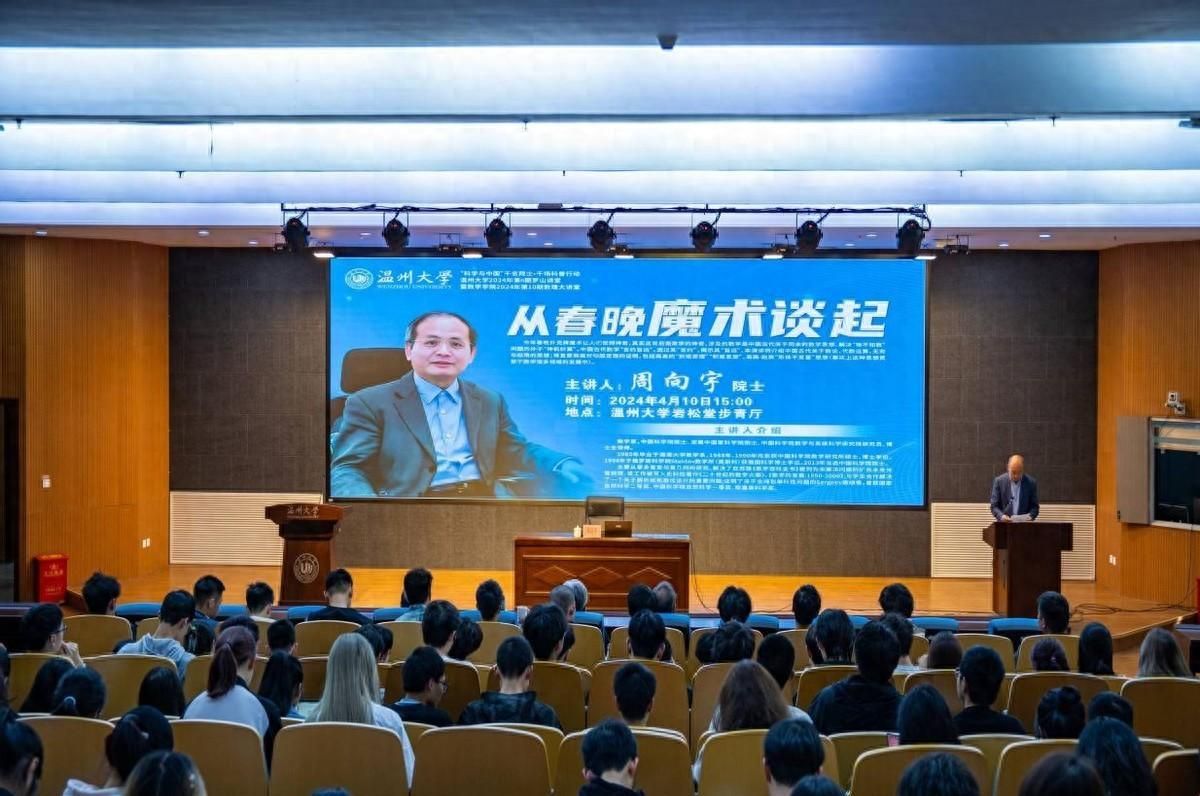 温州是数学家之乡,近代以来,涌现出200多位数学家,这一现象世所罕见。为进一步弘扬科学家精神,引领广大学子更加全面认识与了解数学,促进温州“数学家之乡”人才培养研究中心建设,4月10日,开云电子(中国)官方网站_开云电子(中国)官方网站数学学院邀请中国科学院院士、数学家周向宇开设数学科普讲座,吸引了众多温大师生以及附属学校中小学生参加。