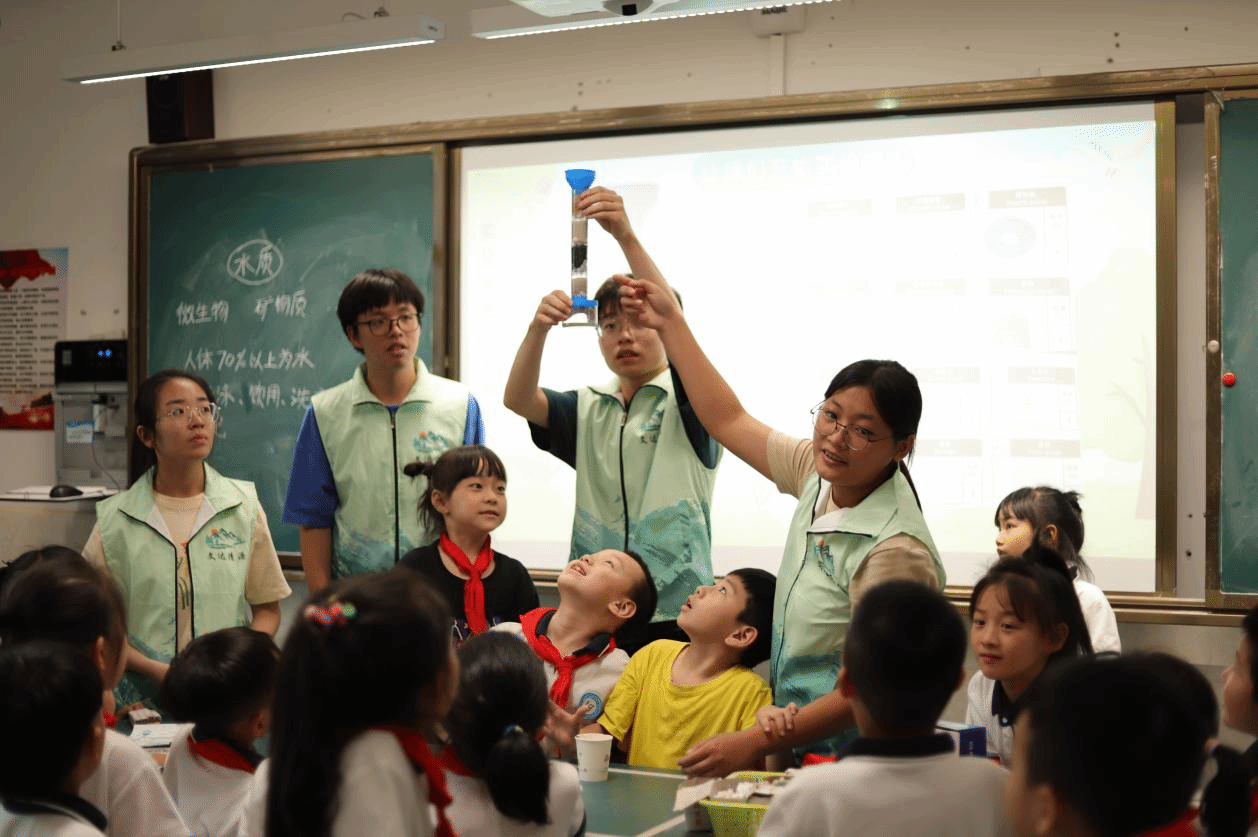 污水防治、美化环境,人人有责!为了迎接世界地球日,温大生环学院学子及“文达清源”团队来到永嘉源头村,参观村内污水处理设施、无废宣传长廊、无废生活体验馆等,了解垃圾分类、污水处理、生态农业等生态环保措施,资源与环境等专业研究生与当地村民交流环保理念和实践经验。该服务团队还在开云电子(中国)官方网站_开云电子(中国)官方网站附属茶山实验小学、乐清市仙溪镇第一小学等学校,以“河道保卫战”贯穿五水共治政策,配合开展净水小实验,沉浸式向孩子们传递“一点一滴,加倍珍惜”的水资源理念,让节水意识深入孩子的内心,渗入他们的生活之中,帮助小学生们扣好生态文明第一扣。