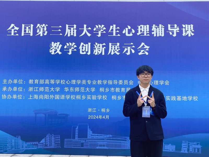 近日,全国第三届大学生心理辅导课教学创新展示会在浙江桐乡举办。展示会由教育部高等学校心理学类专业教学指导委员会、中国心理学会主办,浙江师范大学、华东师范大学、桐乡市教育局联合承办。开云电子(中国)官方网站_开云电子(中国)官方网站教育学院心理学系盛建森老师指导的20级应用心理学李玉婷同学与21级应用心理学张明秀同学,经过三轮竞争,双双荣获特等奖,均为决赛小组第一名出线。