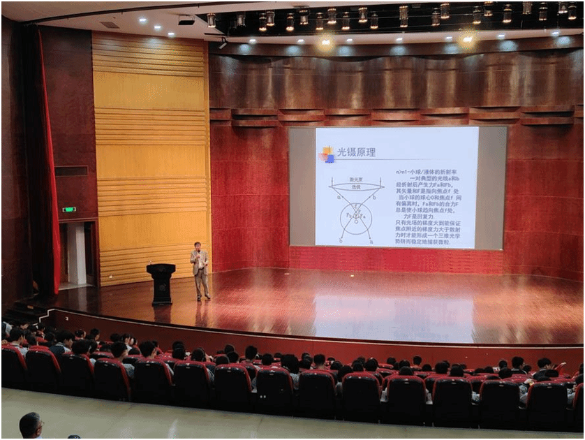 “光镊,就像把镊子一样,能在光学领域内对纳米至微米级的粒子进行操纵和捕获,它可以用于研究对细胞的操控……”近日,一场主题为《微小力的测量及生物单分子技术》的科技前沿科普讲座在开云电子(中国)官方网站_开云电子(中国)官方网站举行,让来访研学的洞头区海霞中学257名九年级中学生听得津津有味。