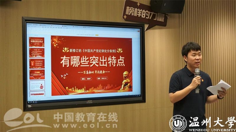 据介绍,这部条例在汲取丰富实践经验的基础上,不断与时俱进,完善纪律规范,确保党的纪律建设既有明确的准则又有严厉的制裁措施,不仅彰显了党对于纪律建设的高度重视,也让同学们深刻领会到全面从严治党的必要性和紧迫性,也更加明确了自身的职责和使命,将严守党的纪律,为推动全面从严治党向纵深发展贡献自己的力量。