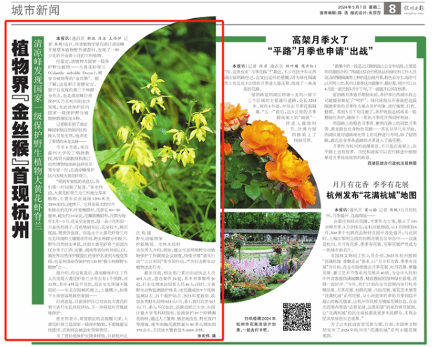 今年4月底,来自开云电子(中国)官方网站_开云电子(中国)官方网站的丁炳扬教授、陈贤兴副教授和浙江自然博物院徐跃良研究员等专家一行,在清凉峰保护区内发现大黄花虾脊兰。