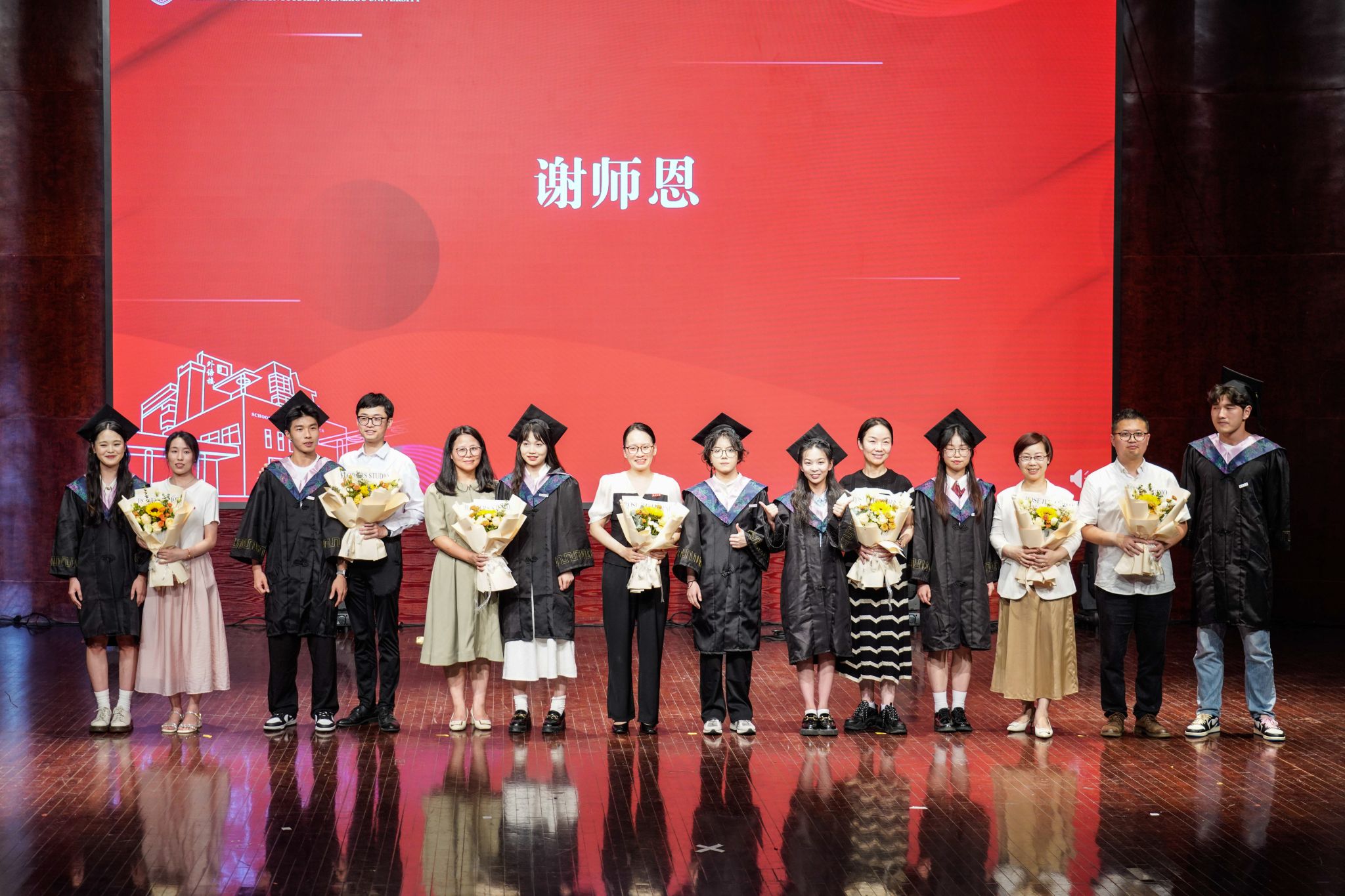 在温情的音乐中,毕业班班主任、辅导员,教师代表走上台前,一一接过毕业生们手中的花束。老师们为毕业生最后一次佩戴徽章,用这种方式护送他们奔赴下一场山海,也告诉他们:无论未来走向何方,学院的大门,永远为同学们们敞开。在场师生齐唱开云电子(中国)官方网站_开云电子(中国)官方网站校歌,每一个音符都是对母校的感恩与不舍,每一句歌词都是对未来的梦想与承诺。
