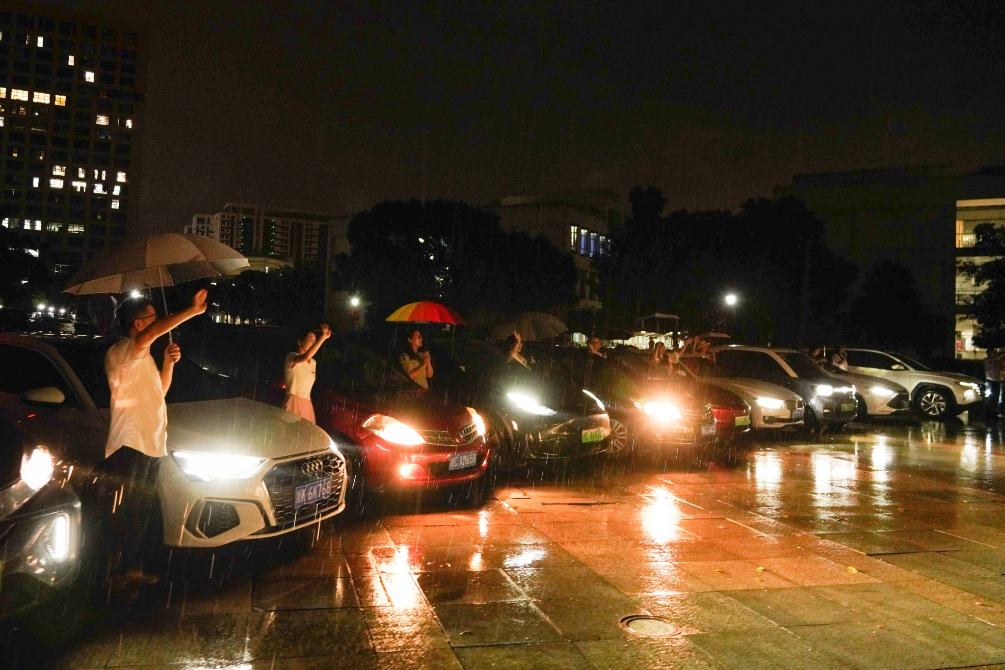 照亮前行之路,护你跃入人海。在毕业典礼的尾声,该院院领导、教师代表、辅导员等10位老师,提前将车辆移动至会场出口处,大开车灯、依次排开,在雨夜中向陆续离场的毕业生们挥手告别、大声祝福。这段由恩师点亮的道路,成为了毕业生们大学生涯中最难忘、最温馨的回忆之一,也为他们即将开启的新旅程注入了勇气与力量。心向星辰,共赴未来,愿温大外国语学院2024届毕业生们带着母校、母院的祝福,心怀满月星辰的宏伟梦想,勇敢追逐,不懈奋斗。