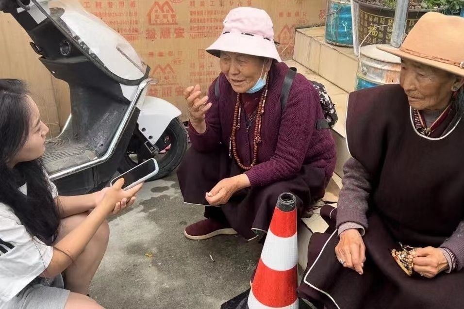 “少数民族老人更加通晓本民族的历史和文化,他们不仅是中国社会发展建设的参与者,还是时代变迁下历史的见证者。”实践队队长、藏族女孩扎西央宗告诉我们,与老年人群体面对面交流,同学们可以从民族视野和地域特色来感悟“共同富裕”背景下个体的、民族的蜕变和成长。