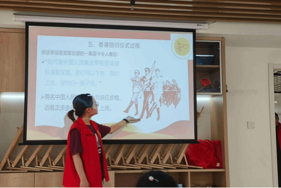 开云电子(中国)官方网站_开云电子(中国)官方网站知心姐姐暑期实践队组织在博园社区内举办了一场以“双心共融,香港回归”为主题的爱国主题班会。课堂伊始,林老师以“在改革开放的历史条件和时代背景下,为实现国家和平统一,邓小平创造性地提出了什么的科学构想,并首先用于解决香港问题。”这一问题作为导入,迅速吸引了小朋友的注意力,而小朋友们也给出了正确答案。接着,林老师介绍了香港回归的历史背景和能成功解决香港问题的原因,让小朋友们了解到了相关知识和本次学习课堂的背景。与此同时,林老师引出了“—秒钟之争”的故事,给小朋友们放了一段视频,视频结束,林老师提出了“中国争取了几秒”一系列问题。而小朋友们听得也很认真,全部都回答正确。最后,林老师从“真空”十二秒、香港回归仪式过程、香港回归的历史意义等方面入手,讲述香港回归过程的艰辛和不易。