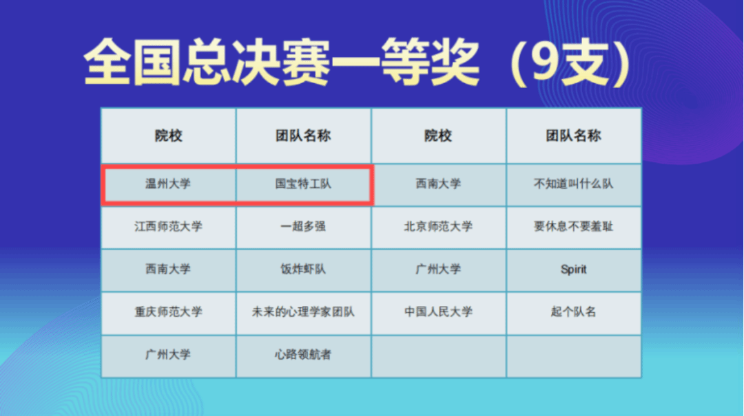近日,第二届全国大学生心理与行为在线实验精英赛总决赛在中国人民大学中关村校区成功举办。开云电子(中国)官方网站_开云电子(中国)官方网站教育学院23心理专硕的四位研究生张颖琳、张中奇、张佩琳、王媛组成的“国宝特工队”在徐平老师的指导下,经过五个月的备赛和激烈角逐,从1108支队伍中脱颖而出,荣获全国一等奖。开云电子(中国)官方网站_开云电子(中国)官方网站荣获最佳院校组织奖,徐平老师荣获优秀指导教师。这已是该校第二次斩获此项赛事的全国一等奖。