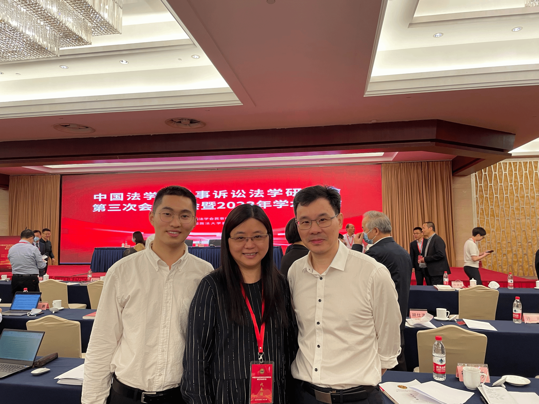 在学业上,二人参加不同的学术会议、研讨会,亦会分享彼此的想法观点,一同申报课题……胡天昊在《中国华人华侨智库专报》《嘉兴大学学报》《司法智库》等高质量期刊上发表学术论文9篇,俞育标在《上海法学研究》《司法改革论评》等高质量期刊上发表学术论文8篇。此外,他们俩累计共获得学术论文类奖项33项,如长三角一体化发展司法论坛一等奖、广西诉讼法学年会论文一等奖……这些丰富的实践履历和学术成果成为他们申请博士的契机和动力。