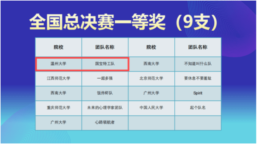 温大教育学院相关负责人表示,第二届全国大学生心理与行为在线实验精英赛是一场高水平的国家级心理学在线实验设计竞赛,也是一场展现全国高校心理学人才培养质量和水平的盛宴。国赛一等奖的荣誉充分展示了教育学院心理系师生的专业素养、技能水平和高质量人才培养成果。