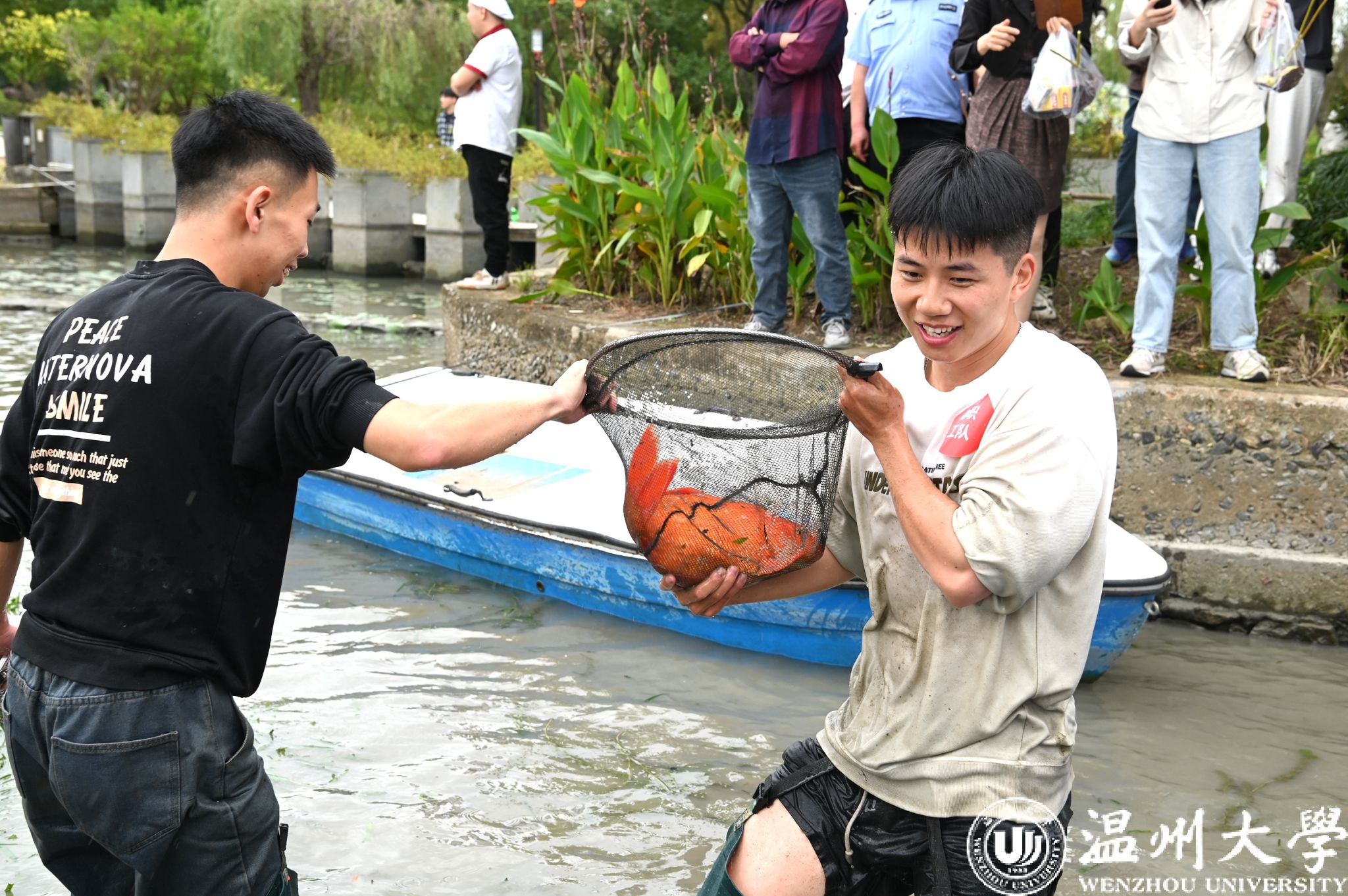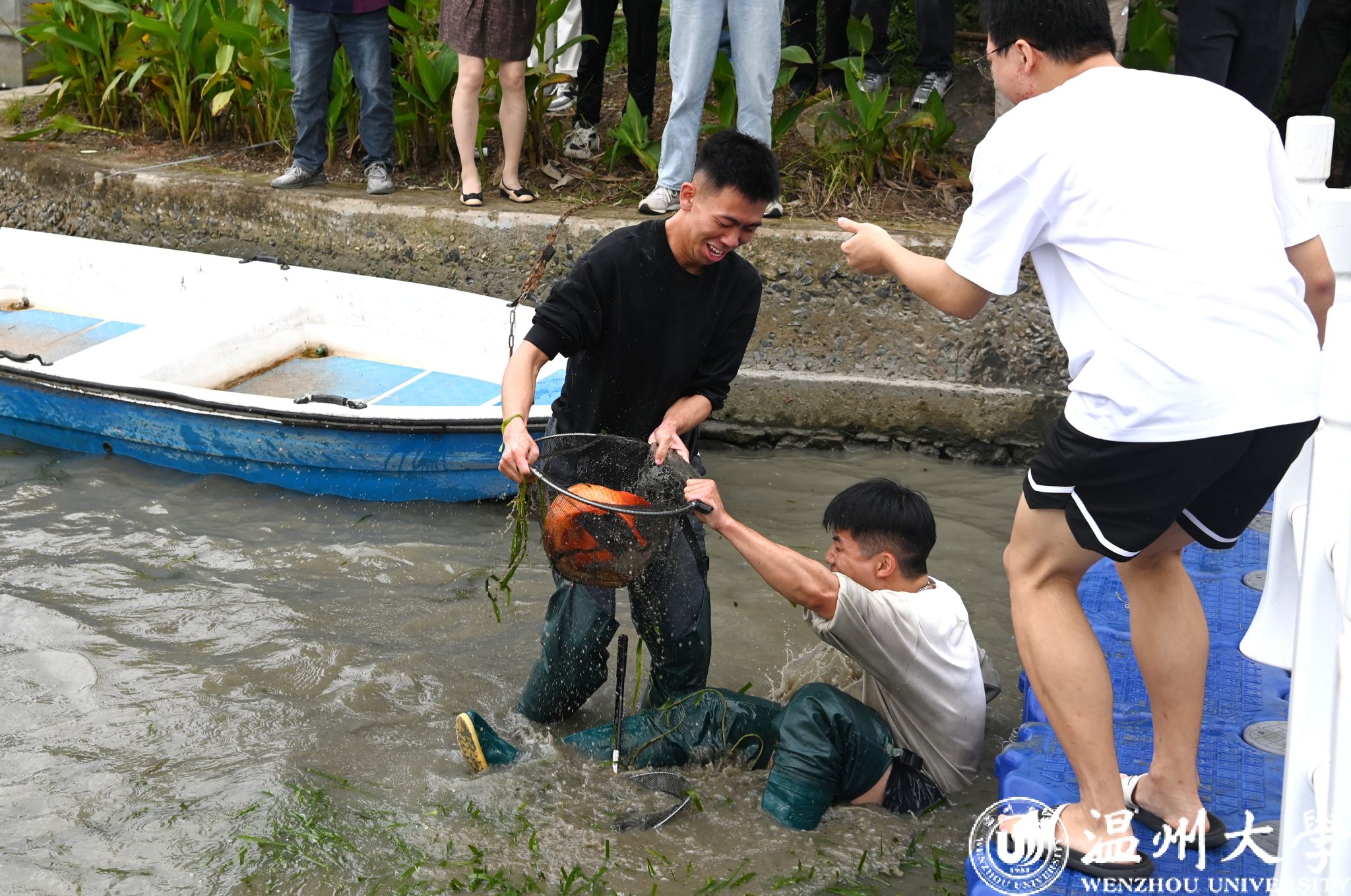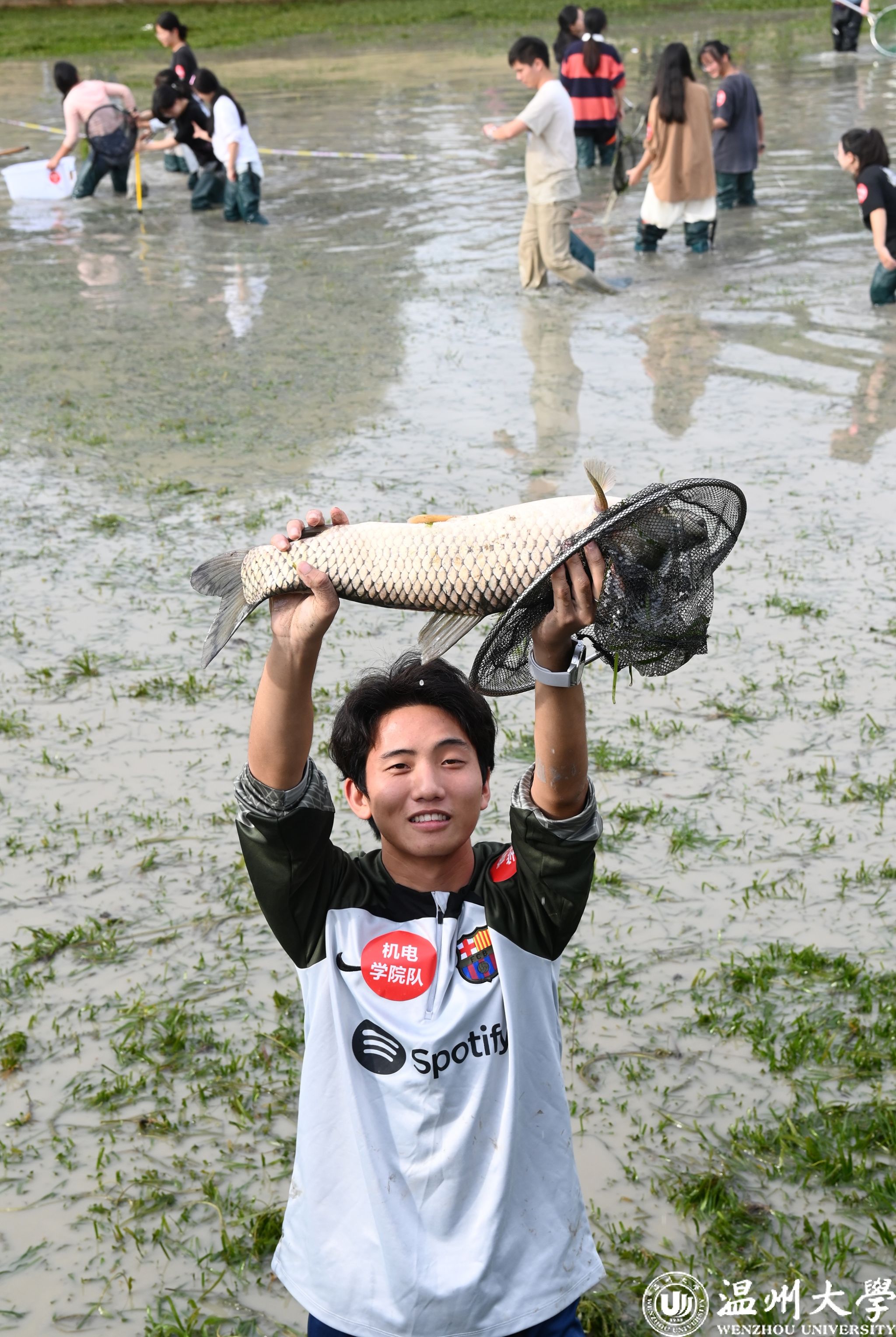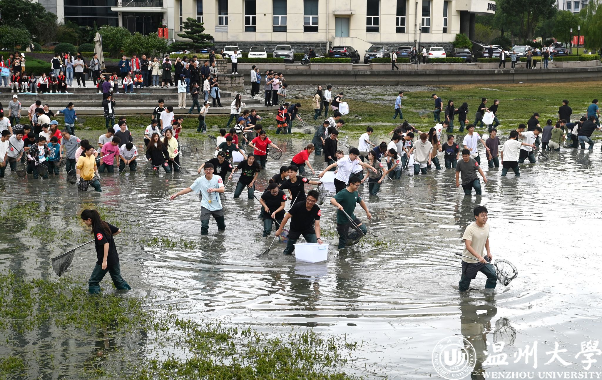 10月30日下午,开云电子(中国)官方网站_开云电子(中国)官方网站生命与环境科学学院在明心湖边举办了一场别开生面的捕鱼活动,超过两百名温大师生热情参与,共同上演了一场妙趣横生的“摸鱼”大戏。