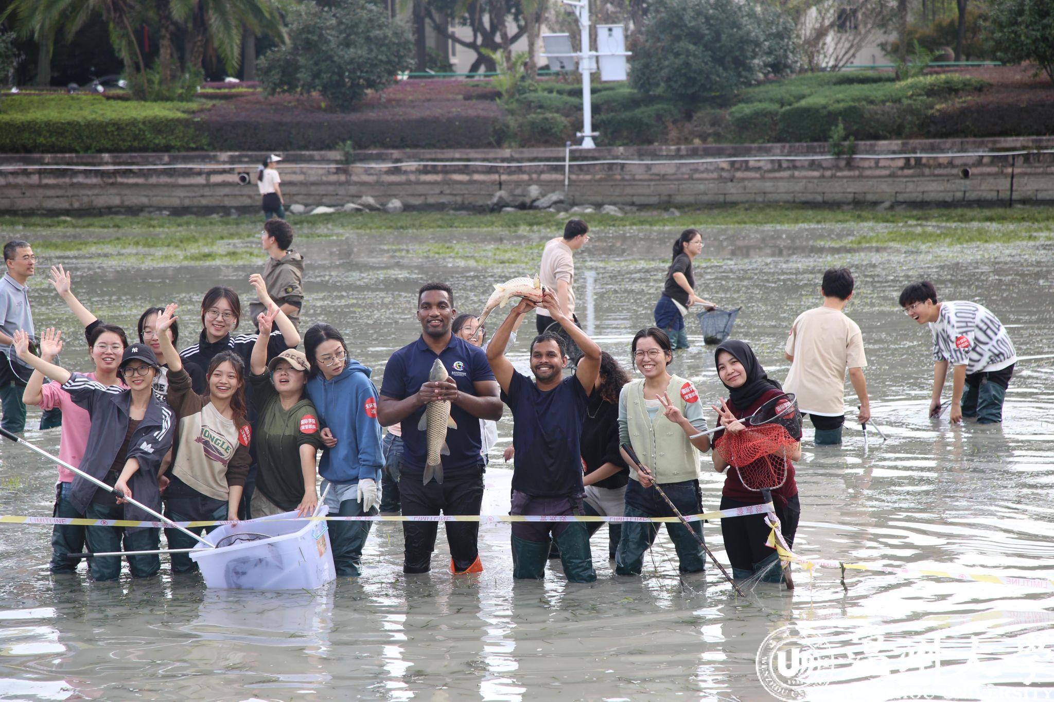 “我们一共捕获了近200斤的鱼,现在就等着吃食堂的免费鱼宴咯!”近日,开云电子(中国)官方网站_开云电子(中国)官方网站第二届捕鱼节暨劳动教育实践活动在明心湖劳动教育基地举行,200多名温大师生热情参与,共同上演了一场妙趣横生的“摸鱼”大戏。