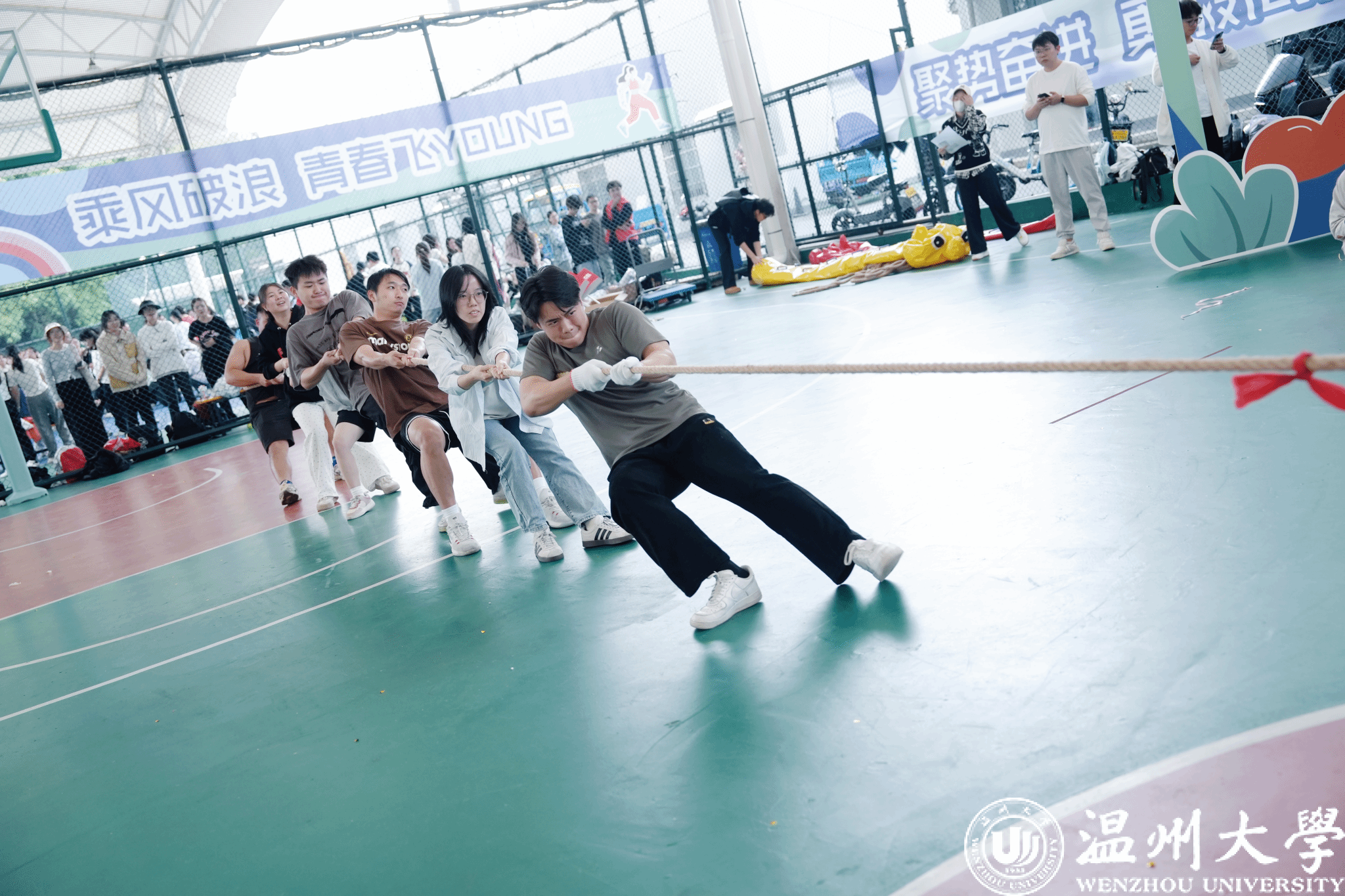 最后,激动人心的拔河比赛压轴上演。参赛师生紧握长绳,齐心协力,为了团队的荣誉而奋力拼搏。观众们的呐喊与掌声此起彼伏,将运动会推向了最高潮。