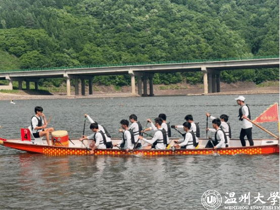 很快在大二的下学期他迎来了自己的第一个完整赛季,他们参加了位于合肥的“长三角中心城市高校龙舟邀请赛”,并且拿下了一等奖,此后他们又赶赴吉林的靖宇县,参加了“2024全国大学生龙舟锦标赛”并拿下了不俗的名次,女生们更是拿下大满贯的荣誉。在两场比赛后他们也没有休息,在这个暑假里也在坚持训练,并以东道主身份参与到温州当地举办的全国青少年龙舟锦标赛中。在这个赛季他几乎划满了全部比赛,不仅仅是说他为龙舟队贡献了他的力量,更应该说龙舟队给了他施展自己的一个机会。在暑假的备战之余,他们成立了“强城筑梦 龙舟铸魂”温大暑假实践队,参观了温州龙舟博物馆,跟随着工作人员的讲解慢慢感受龙舟所承载的文化价值与精神力量。他们也作为工作人员帮助开展了专门为温大教职工子女创办的水上运动公益培训班,培养教职工子女对于水上运动的兴趣,与此同时,他们也当了一回小教练,为要参加u系列的小朋友们提供技术上的指导,在教学的同时也潜移默化地将龙舟文化传承给了更加年轻的下一代。