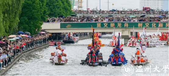 现如今,提到温州,就离不开龙舟,龙舟文化已经成为了温州文化的重要组成部分了,温州赛龙舟的历史,可以一直追溯唐宋时期,据文献记载,温州的龙舟竞渡在每年端午时节都会呈现“千帆竞渡,万人空巷”的壮阔场面,而在2012年,温州北国家体育总局评为中国龙舟名城,这标志着温州龙舟文化的重要地位与影响力。时至今日,温州每年都会举办规模盛大的龙舟竞赛及龙舟巡游活动,在瑞安,现如今已经形成了一村一船甚至一村两船的景象,村中的青壮年人都会在晚饭后组织下水练习龙舟。在今年五月份,瑞安举办的瑞安龙舟文化嘉年华活动,吸引了众多海内外游客以及许多温州侨胞们前来参观。让所有人真正感受了“同舟共济,奋勇争先”的龙舟精神。