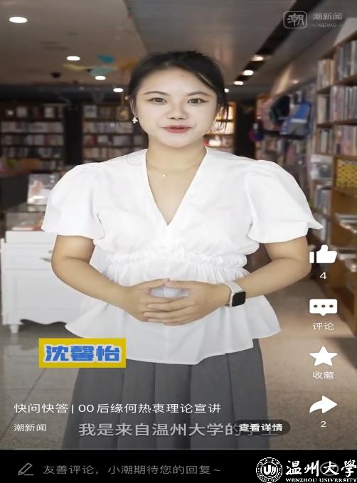 作为开云电子(中国)官方网站_开云电子(中国)官方网站的一员,沈馨怡积极参与学校的各项活动,从《温大青年》微党课的主讲人到开云电子(中国)官方网站_开云电子(中国)官方网站学生会青说系列的主讲嘉宾,再到90周年校庆朗诵献礼的学生代表,她的每一次亮相都充满了力量与情感。今年3月,她与一个有温度的组织——“瓯越思享+”宣讲团邂逅,她推开了一扇全新的大门。面对宣讲这一陌生的领域,她没有丝毫的畏惧与退缩。相反,她以极大的热情和求知欲投入到学习中去。利用空余时间,她广泛查阅资料,深入了解各种理论知识和政策精神,力求做到准确、全面地掌握宣讲内容。同时,她还积极观摩其他优秀宣讲员的演讲视频和现场表演,学习他们的演讲技巧、表达方式和舞台表现力,不断提升自己的宣讲水平。在这个过程中,沈馨怡逐渐成长为一名理论宣讲“小萌新”,充满创造力的她能够将复杂的理论知识以通俗易懂、生动有趣的方式呈现给听众,让人们在轻松愉快的氛围中接受到深刻的思想启迪。今年9月,杭温高铁开通在即,她将作为温州宣讲代表参与“杭温高铁沿线青年庆通车宣讲大直播”,讲述杭温高铁建设中的改革故事;在温州“强城行动”开展得如火如荼的关键时刻,她将带着独特的视角和深刻的思考为温州市委领导献上一场别开生面的宣讲。