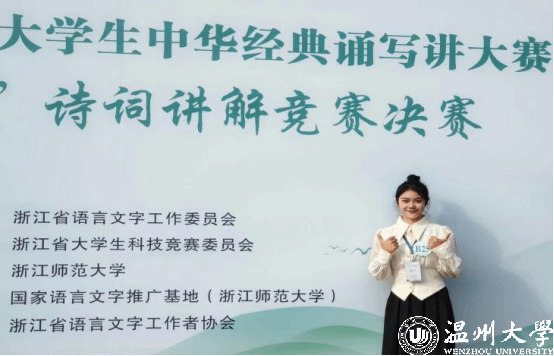 作为“00”后的一员,沈馨怡更是展现了这一代青年的独特魅力和风采。在竞赛领域,她不仅在省级中华经典诵写讲大赛中屡获一等奖,还代表浙江省参加国家级的“诗教中国”诗词讲解竞赛并斩获三等奖。此外,沈馨怡还积极投身社会实践和公益活动,担任开云电子(中国)官方网站_开云电子(中国)官方网站南白象附属实验小学“童音金话”拓展课负责人以及“伯温断案”廉洁作品导演等职务,她用自己的专业知识和热情为孩子们带去知识的乐趣,同时也通过艺术的形式传递廉洁文化,展现了当代大学生的社会责任感和使命感。她说道:“能传播温州声音、温大声音、“00后”声音,是我的幸运。”