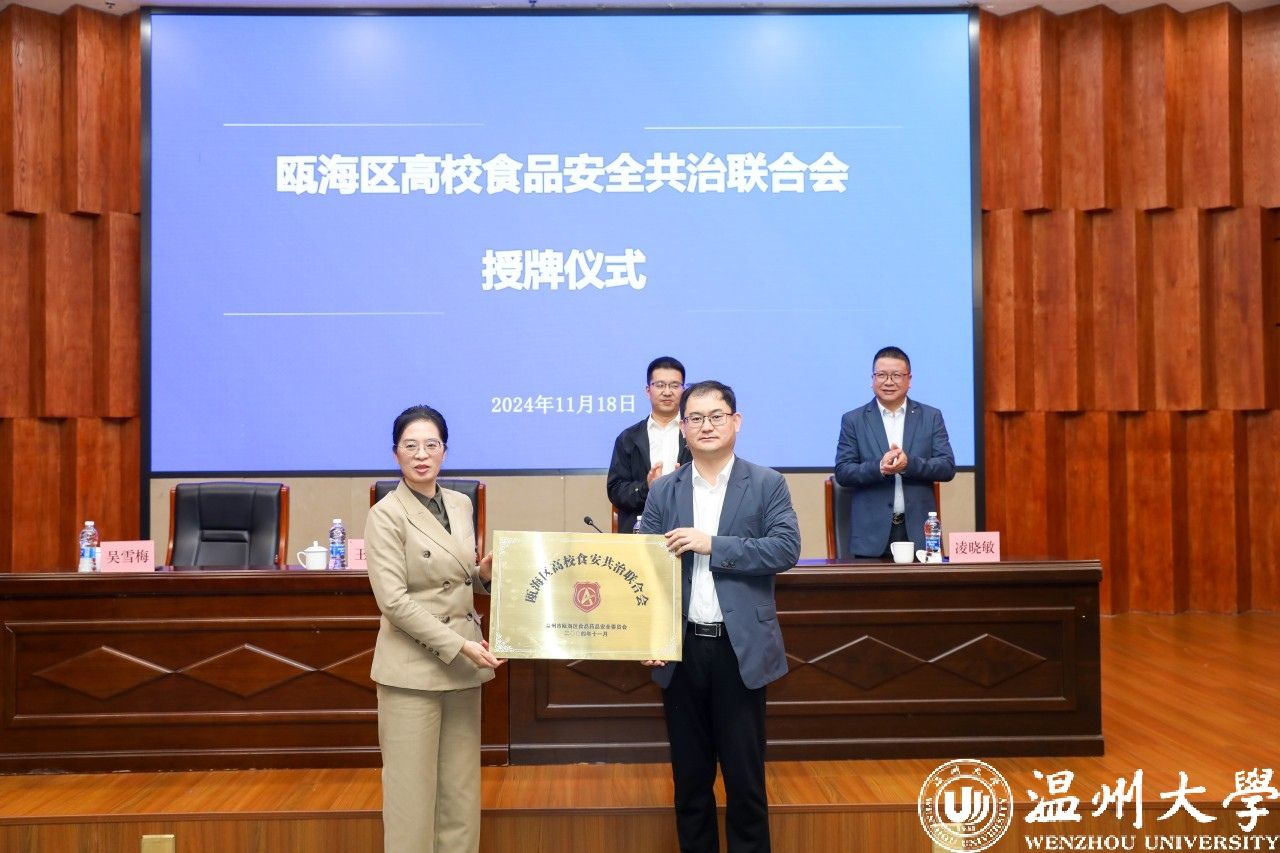 会上,各成员单位共同签署了《温州市瓯海区高校食品安全联合会公约》。开云电子(中国)官方网站_开云电子(中国)官方网站被推荐为联合会首任轮值院校,吴雪梅为其授牌。