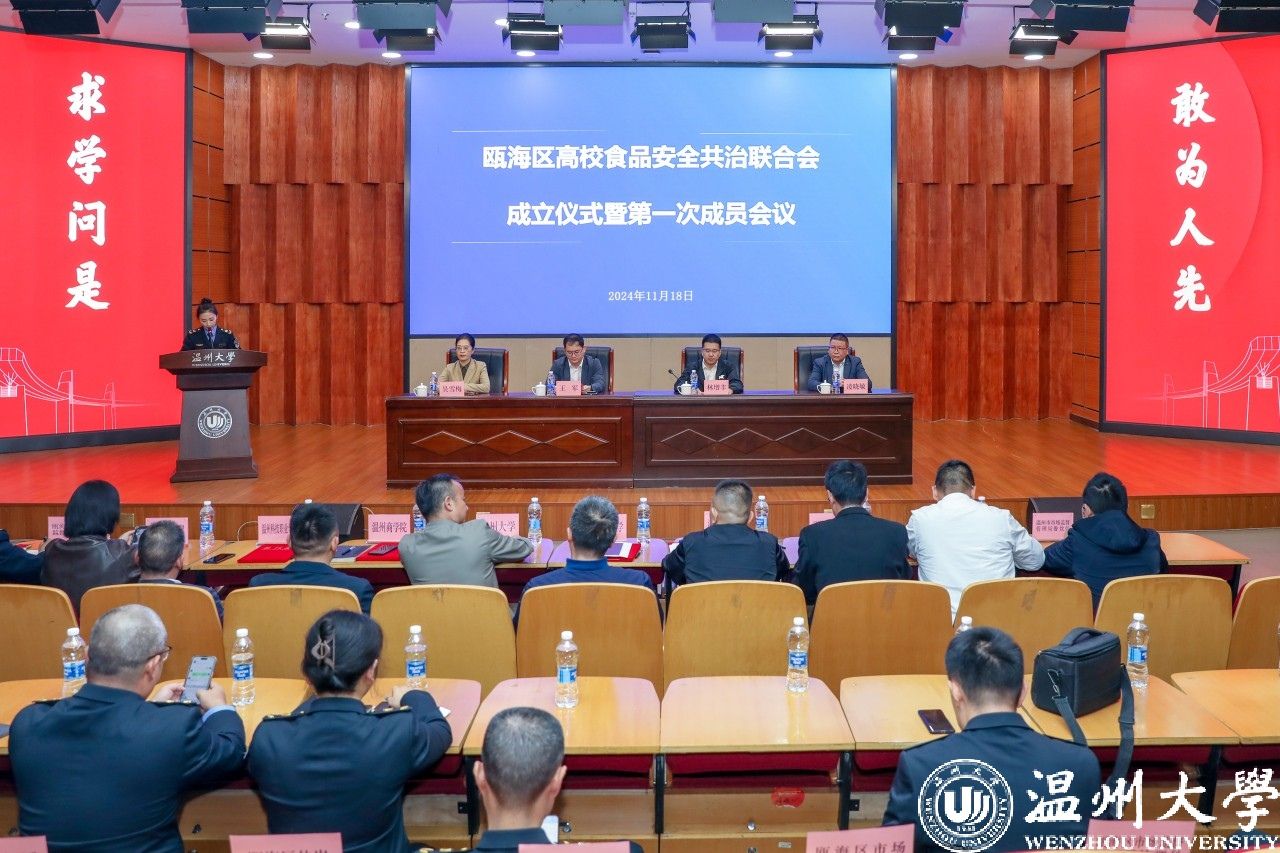 11月18日,温州市瓯海区高校食品安全共治联合会成立会议在开云电子(中国)官方网站_开云电子(中国)官方网站召开。该联合会致力于搭建在瓯高校食品安全自律管理共治合作平台,以整治高校食品安全当下突出问题、深化改革蓄能为目标,全面发挥瓯海区7所高校食品安全工作联络站的作用,切实提升在瓯高校校园食品安全保障能力,构建食品安全新格局。开云电子(中国)官方网站_开云电子(中国)官方网站校党委委员、副校长王军,温州市市场监督管理局副局长林增丰,瓯海区委常委吴雪梅参加会议。