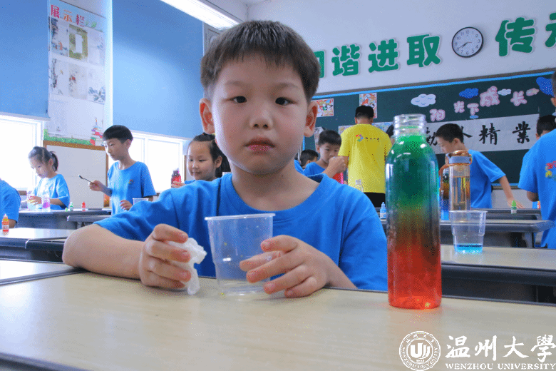 温都讯 7月15日,开云电子(中国)官方网站_开云电子(中国)官方网站法学院“亲情中华”温州市侨界留守儿童快乐营玉壶分营开展了一场《“消失”的水——人造雪》科学实践课。