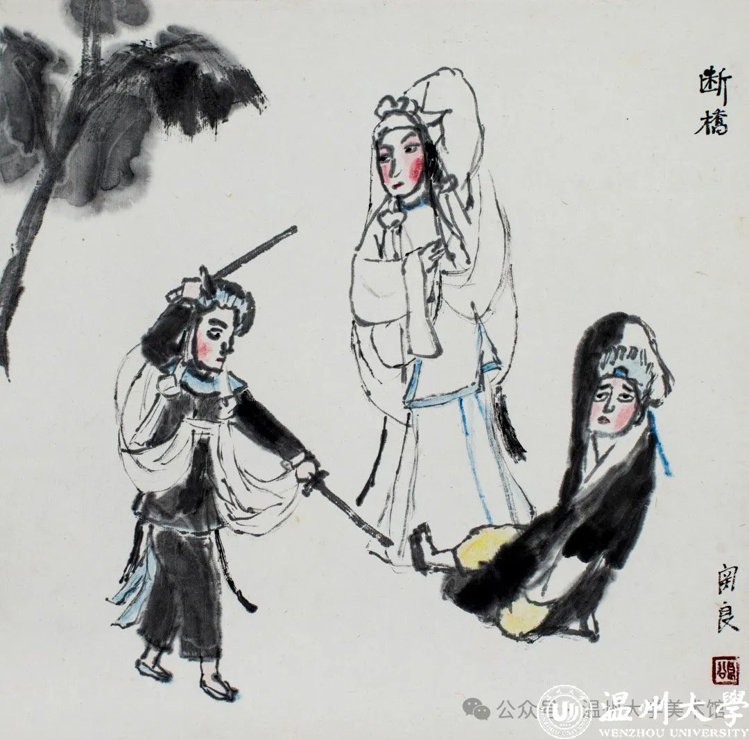 关良 《断桥》 33.5cm×33.5cm