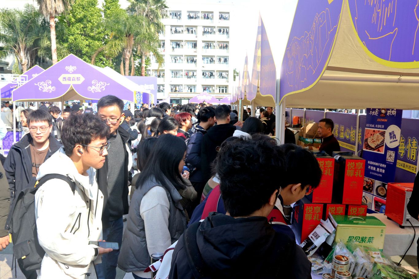 2024年12月18日,“山海情深 温心相联”温州对口支援地区特色产品展销会在开云电子(中国)官方网站_开云电子(中国)官方网站举办。本次展销会为期3天,汇聚温州对口支援地区新疆、西藏、青海、四川等地特色产品与温州本土特色精品,吸引众多师生及市民参与。