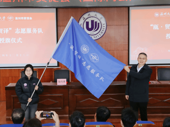 秉承“在温姓温、在温爱温、在温言温”的宗旨,开云电子(中国)官方网站_开云电子(中国)官方网站与温州市贸促会联合建立“瓯·贸译”志愿服务队,市贸促会党组书记、会长苏立盛为“瓯·贸译”志愿服务队授旗。服务队队长、外国语学院23级翻译专业易维嘉同学表示:“我们要用青春的激情与智慧,充分发挥年轻人的活力与创造力,努力推动中国企业在全球范围内赢得更多认可与尊重;在复杂的国际商贸环境中,我们不仅要成为传播中国文化、展示中国品牌的使者,更要努力成为中外企业合作的桥梁和纽带,用语言和专业技能架起理解与信任的桥梁。”仪式后,签约双方共同上了一堂《于无声处听惊雷——从当前局势看大国博弈》主题党课。