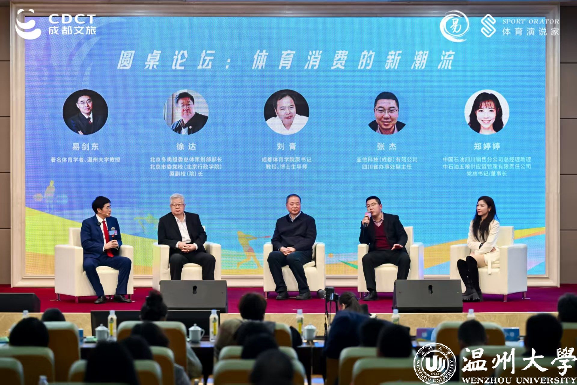 易剑东教授的跨年演讲,为成都乃至全国的体育爱好者、从业者提供了一个深入交流、共同探讨的平台。在今天的演讲现场,还举行了一场以体育消费的新潮流为主题的圆桌论坛,北京冬奥组委总体策划部部长、北京市委党校(北京行政学院)原副校(院)长徐达,成都体育学院原书记、教授、博士生导师刘青,亚信科技(成都)有限公司四川省办事处副主任张杰,中国石油四川销售分公司总经理助理、中石油五粮供应链管理有限责任公司党总支书记/董事长郑婷婷等行业精英汇聚,共同探讨体育消费市场的新趋势、新机遇,为更好促进成都体育事业发展展开了一场“头脑风暴”。