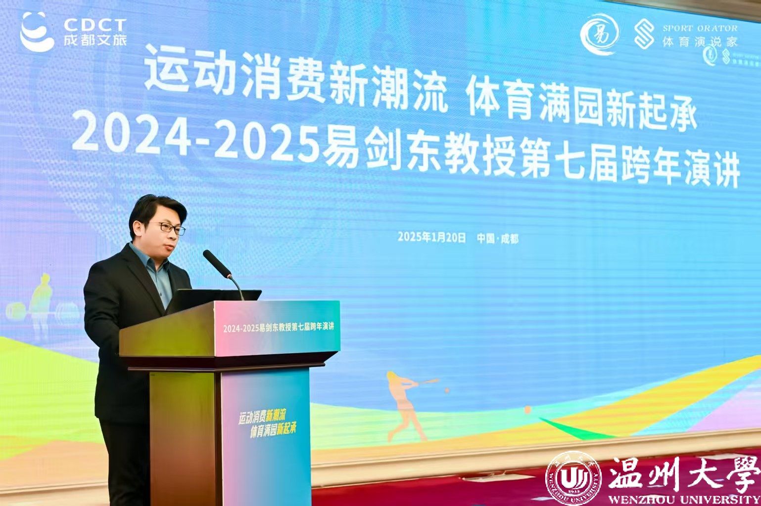 一线聚焦成都电(杨俊报道)中国体育如何与世界共舞?1月20日,“易剑东教授第七届跨年演讲”在成都天府国际金融中心精彩开启,这是成都首次举办体育学术跨年演讲活动。易剑东教授以“中国体育如何与世界共舞”为主题,从全球视野出发,深度剖析中国体育如何把握机遇,应对挑战,实现与国际体育的深度融合,与世界同频共振。同时,探讨了体育消费市场的新趋势、新机遇,传递体育与产业相互赋能的理念,营造全城迎世运的良好氛围,为听众呈现了一场交融与碰撞的体育思想盛宴。