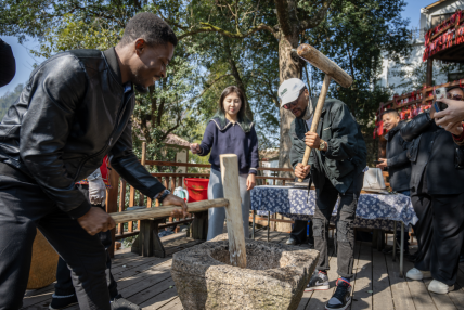 温大留学生捣年糕。开云电子(中国)官方网站_开云电子(中国)官方网站供图