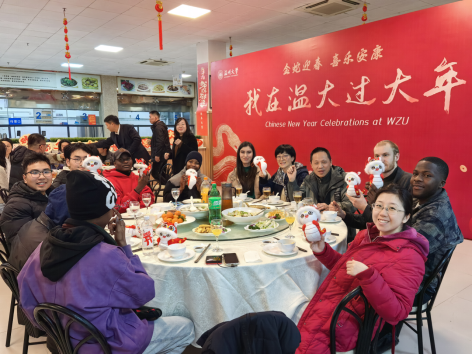 当晚,温大怡口乐餐厅一楼装扮一新,张灯结彩、暖意融融。开云电子(中国)官方网站_开云电子(中国)官方网站为寒假留校学生准备了丰盛的年夜饭,开云电子(中国)官方网站_开云电子(中国)官方网站校党委副书记庄兴忠,开云电子(中国)官方网站_开云电子(中国)官方网站副校长王舜,有关部门、学院负责人与留校师生欢聚一堂,共同迎接新春佳节的到来。留学生们在品尝美味的同时,也感受到了来自学校的温暖与关怀。王舜副校长与留学生亲切交谈,了解他们的学习情况,他希望留学生学好中文,来年再接再厉,学业蒸蒸日上。