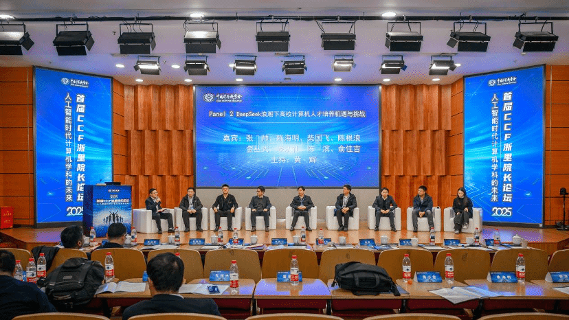 值得关注的是,本次论坛不仅是一场学术盛会,更通过圆桌论坛的形式搭建了关于新形势下计算机学科发展与人才培养的交流平台。本次圆桌论坛汇聚浙江多所高校计算机学院院长,围绕人工智能发展给学科建设与人才培养带来的机遇与挑战展开全新探讨。
