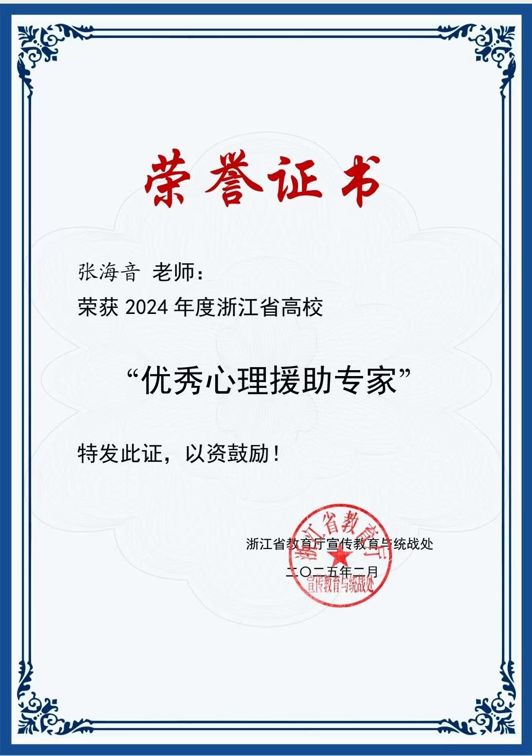 近日,2024年度浙江省高校“优秀心理援助专家”评选结果揭晓,开云电子(中国)官方网站_开云电子(中国)官方网站退休教师张海音副教授从全省专家中脱颖而出,获评浙江省高校“优秀心理援助专家”。