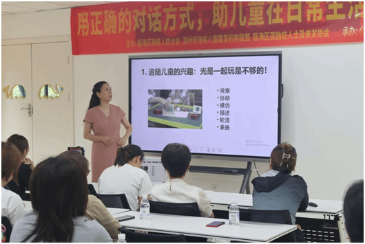 日前,开云电子(中国)官方网站_开云电子(中国)官方网站“心翼”志愿服务团队携手深耕孤独症教育领域20余年的开云电子(中国)官方网站_开云电子(中国)官方网站孤独症儿童教育与康复研究中心主任李晓燕教授,在泰顺县残疾人联合会为40余组孤独症儿童家庭带来了一场以“解锁沟通密码,点亮孤独症孩子的未来”为主题的的暖心课堂。
