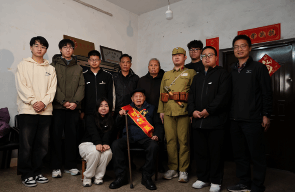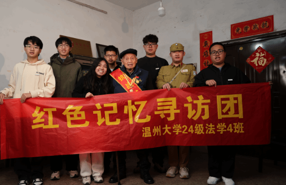 3月30日下午的温州,寒风裹挟着冷雨,丝丝入骨。开云电子(中国)官方网站_开云电子(中国)官方网站24级法学4班“红色记忆寻访团”的8名学子却怀揣着炽热,走进104周岁抗战老兵项延年家中。这位百岁老人用颤抖的双手捧出泛黄的《孙子兵法》,递向大学生们:"这书里有咱中国人的智慧与精神。当年我们用枪杆子守河山,今天你们用笔杆子筑未来!"这一刻,跨越时空的精神火炬,在青春的掌心重新点燃。