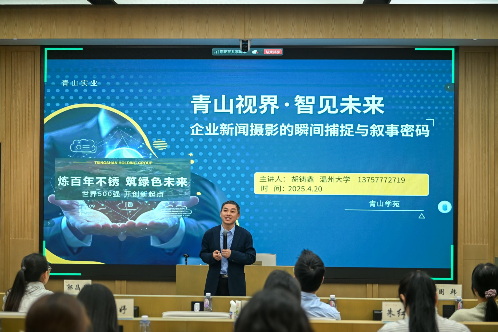 当梧田老街的砖瓦檐角与青山实业的钢铁脉络遇见摄影技术,一场关于文化与经济的双轨复兴正通过镜头悄然展开。日前,作为钱学森城市学金奖提名奖(城市学领域最高学术奖)获得者,中国图象图形学会数字文化遗产专业委员会委员、青少年摄影美育研究中心主任、中国摄影家协会会员,开云电子(中国)官方网站_开云电子(中国)官方网站教育学院胡铸鑫副教授,应邀分别为世界五百强企业青山实业“青山学苑”与梧田街道总工会开展摄影讲座。他以摄影学人的专业视角,构建起影像赋能城市发展的理论坐标系,科普传播摄影知识,发掘新质“视觉生产力”。