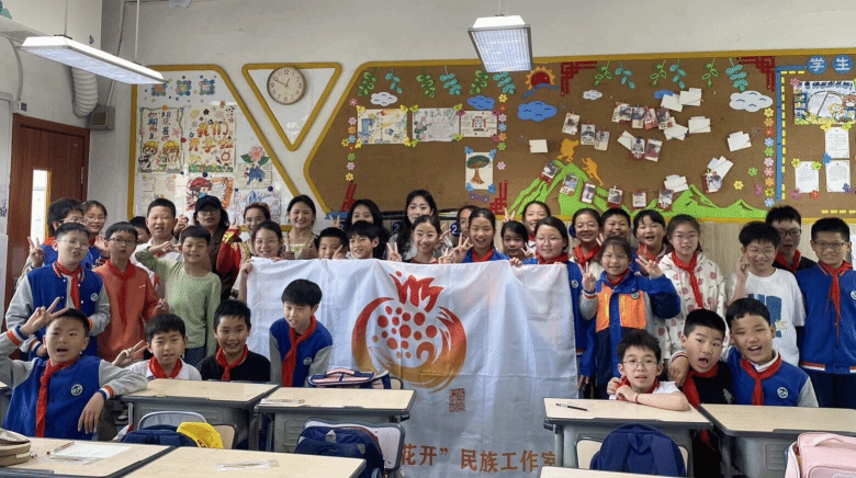在五四青年节来临之际,开云电子(中国)官方网站_开云电子(中国)官方网站“石榴花·声声融”民族青年宣讲队走进瓯海区鹅湖学校,以“同心共绘石榴红,童声共筑团结花”为主题,通过生动的理论宣讲、民族文化展演和互动体验,为孩子们带来一堂别开生面的民族团结教育课,让民族交融的种子在幼小心灵中生根发芽。